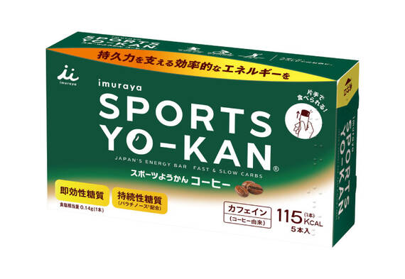 即効性糖質と持続性糖質に加え、コーヒー由来のカフェインも補給できるスポーツ向けのようかん。 コーヒー由来のカフェイン(40mg/本)で勝負所での一押しをサポート! スポーツようかんはスポーツ・アウトドア・フェスなど持久力が必要なあらゆるシーンで活躍する、持ち運びに便利なスティックタイプのようかんです。