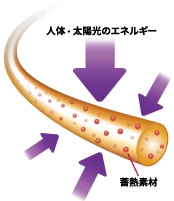 蓄熱繊維 コンプレッションウェアに、蓄熱機能をプラス。 蓄熱粉末素材を練り込んだポリエステル糸が、人体と環境からのエネルギーを吸収し蓄え保温効果をより高めます。 また、シャツは首まわりと脇部分に、消臭糸スイトールCを使用しています。